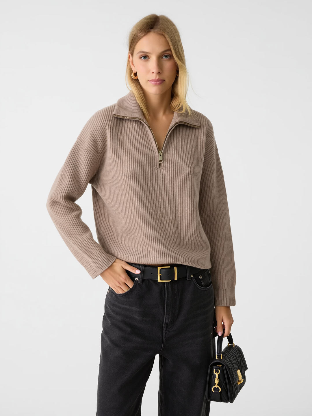 Women's V Neck Cable Knit Jumper with Contrast Trim